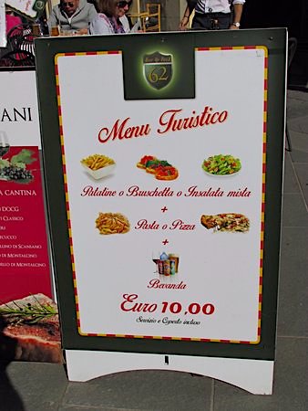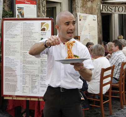 Places to Avoid Steer clear of those obvious tourist hot spots If the place is full of diners eating their evening meal at 6PM or certainly before 7:30PM then it is likely to be filled ONLY with tourist. No Italian would consider dining before 8PM, usually much later and most restaurants do not open their doors for the evening before 7:30PM. If you come across a cheerful looking place with many national flags outside and a “Tourist Menu” sign, with someone playing cheesy “Italian” music and pictures of food, beware; it is most likely a typical tourist trap. There may well be some exceptions but it is on the cards you will be served with some frozen and then microwaved food. Hardly what you have travelled all this way for! These places are usually found on the main streets and piazzas as their aim is the continually passing tourist mass, enticing them in with signs that may, at first, seem comforting. These places often include a “spruiker” or a “host” standing out front coercing you inside, waving a menu at you that promises to be in YOUR language. In Italian they are called “battitore” which translates as “hitter.” Keep walking! |